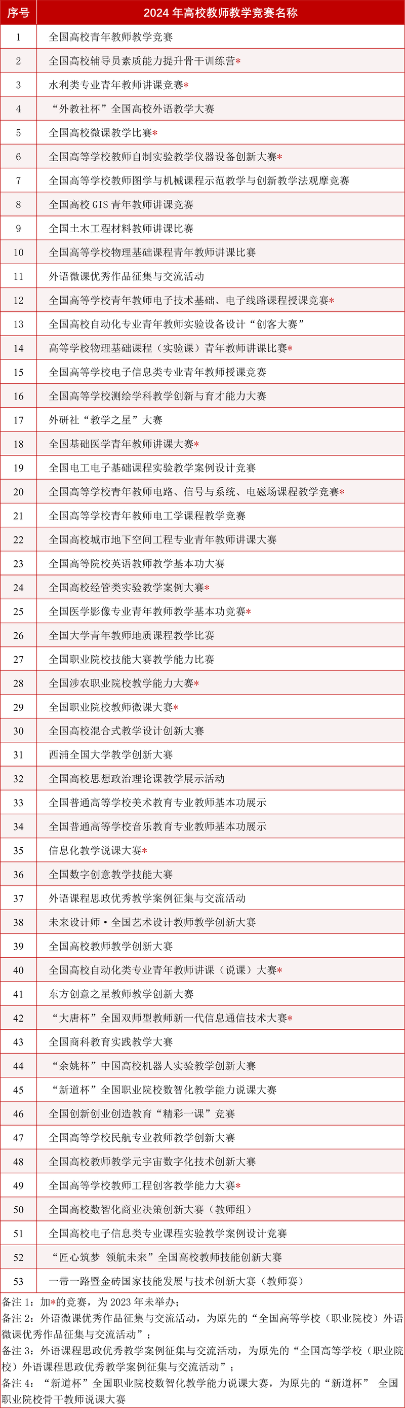 2024年高校教师教学竞赛清单(中国高等教育学会高校学生竞赛与教师发展数据平台发布)